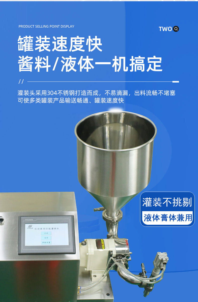 全新卧式设计,轻巧方便,自动抽料,对于黏稠较大的膏体可加料斗加料。手动及自动相互切换功能:当机器处于"自动"状态,机器按设定速度,自动进行连续灌装。而当机器处于"手动"状态,操作人员踩动踏板,来实现灌装,若一直踩住不放,则也变为自动连续灌装的状态。防滴漏灌装系统:灌装时气缸上下动作,带动闷头。